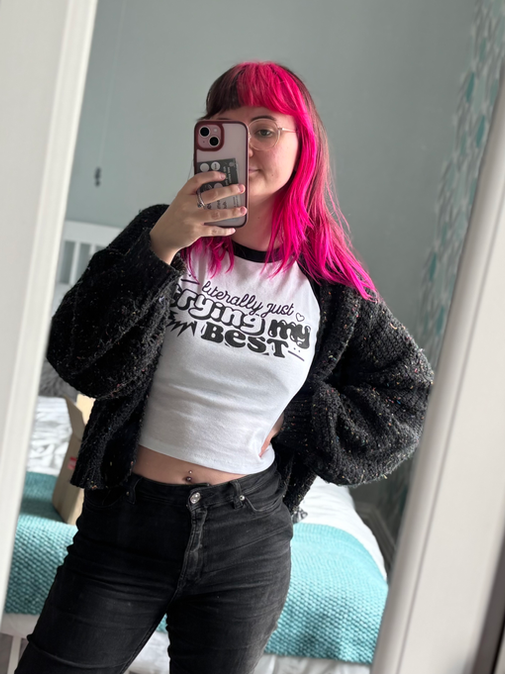 Combining a love for graphic design and fashion, Girly Gloom tees feature existential but relatable graphics designed and screen printed by myself, from my home!